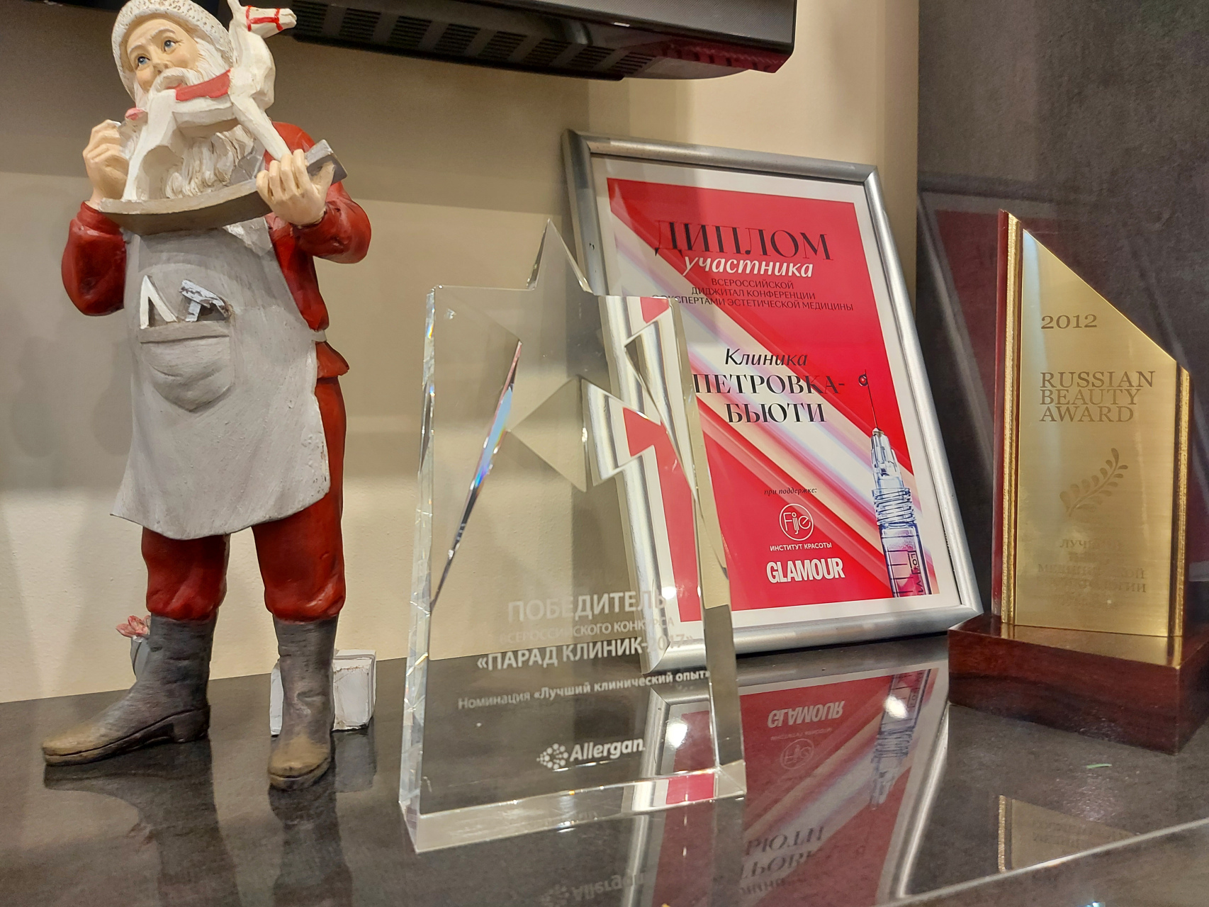Множество побед в профессиональных конкурсах и номинациях. Победа на всероссийском конкурсе "Парад клиник-2021", "Парад клиник-2017".