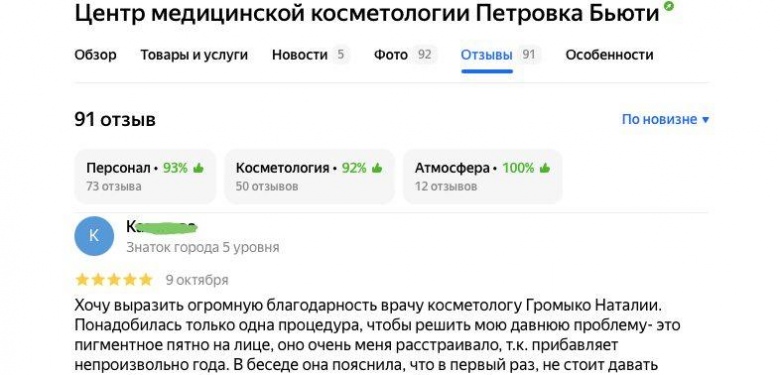 Отзыв можно почитать на прикрепленном фото. Фото «после» делалось через месяц после процедуры.