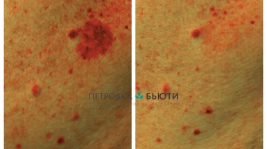 Одну лазерную процедуру на аппарате Хармони, состоящую из комплексного применения двух манипул - против сосудов+против пигмента.