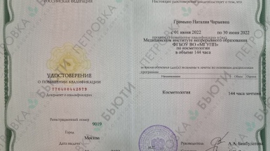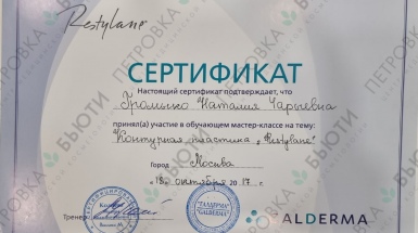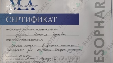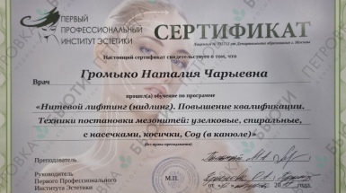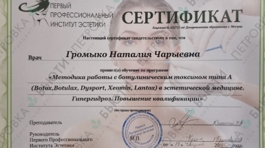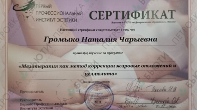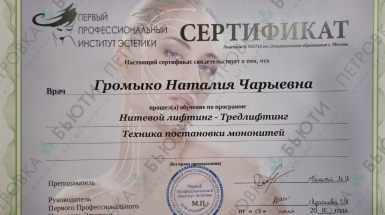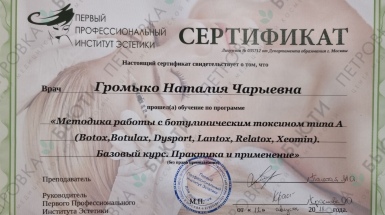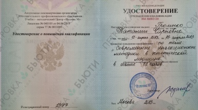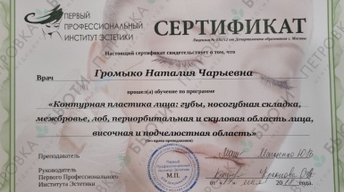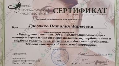 Мезотерапия как метод коррекции жировых отложений, Контурная пластика лица, Контурная пластика губ филлерами на основе гиалуроновой кислоты, Контурная пластика объемное моделирование, Нитевой лифтинг(нидлинг), Нитевой лифтинг-Тредлифтинг, Методика работы с ботулиническим токсином типа А, гипергидроз, повышение квалификации Первый Профессионльный Институт Эстетики.