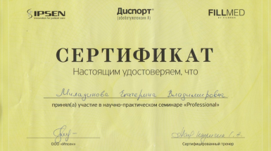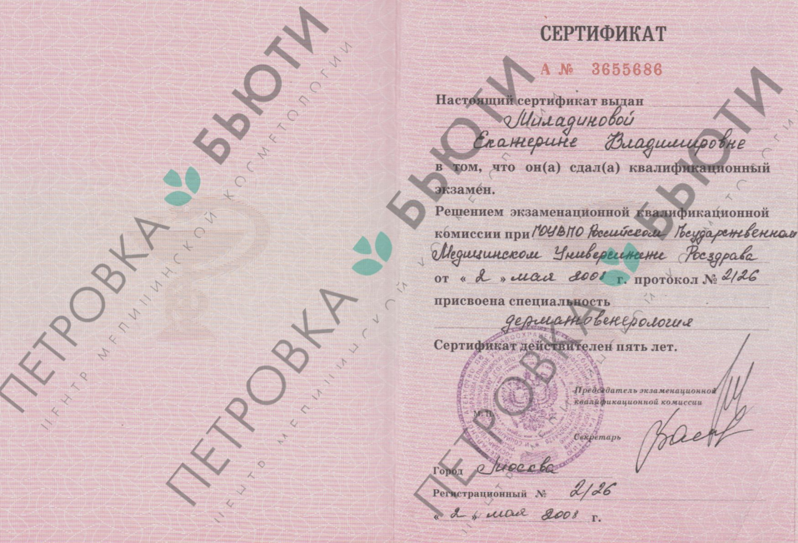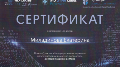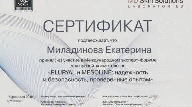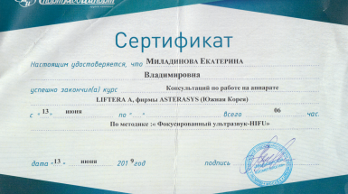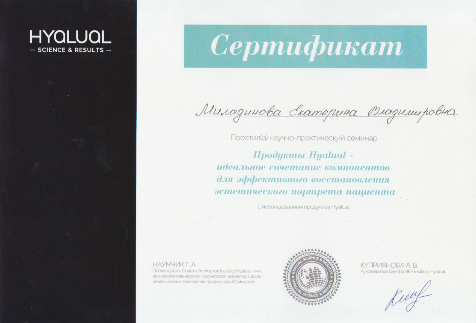 Здравствуйте! Мне делали процедуру "Чистка лица" + "Пилинг" в понедельник вечером, а уже в пятницу я была совершенно другим человеком. Большое спасибо врачу Миладиновой Екатерине Владимировне!