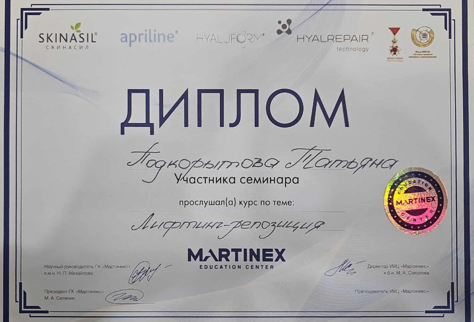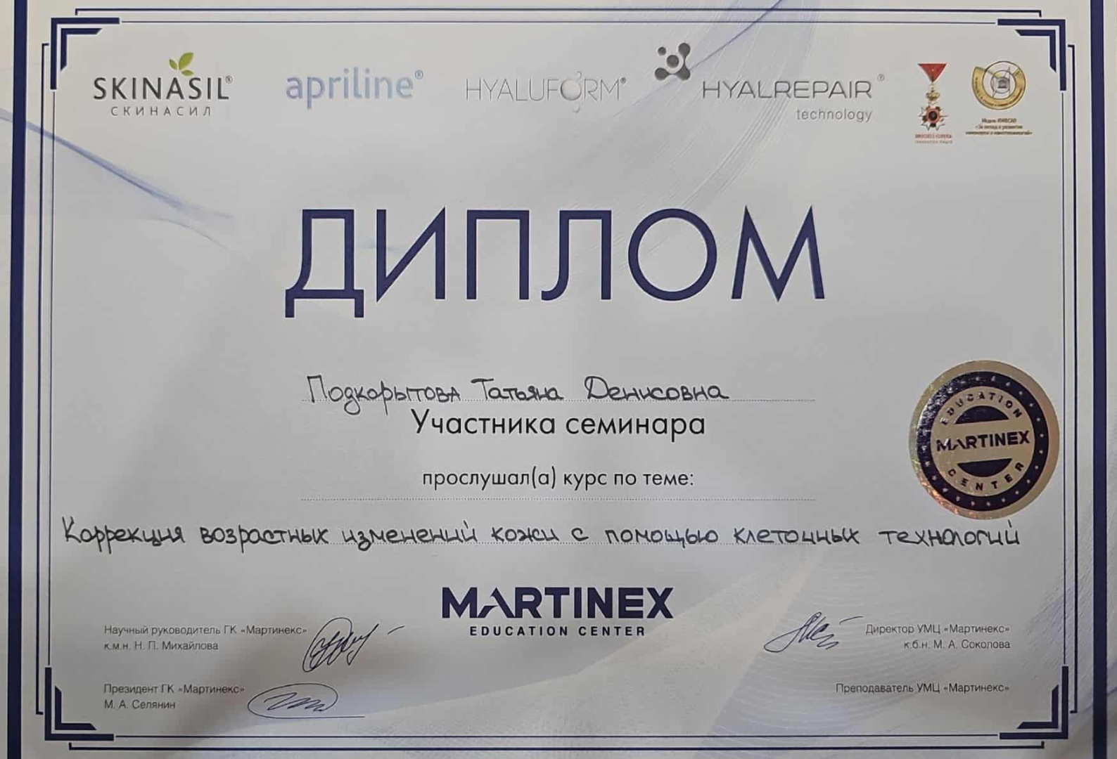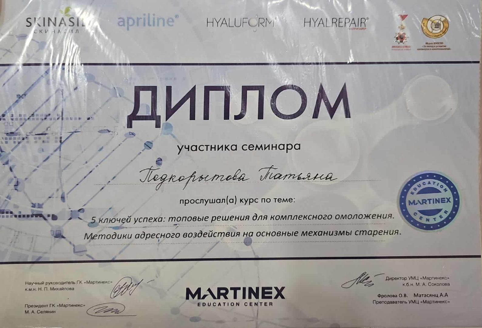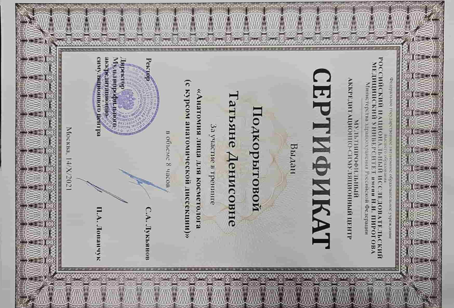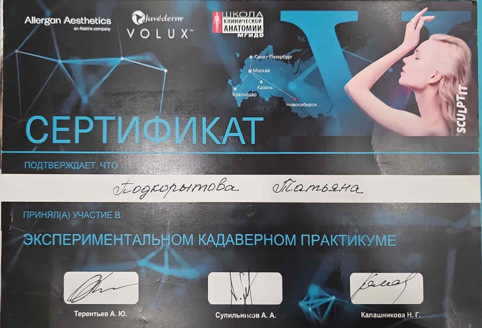 2021 - Кадавер-курс "Анатомия в деталях, безопасная косметология для эстетической медицины".