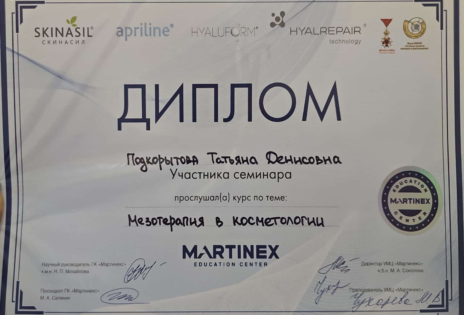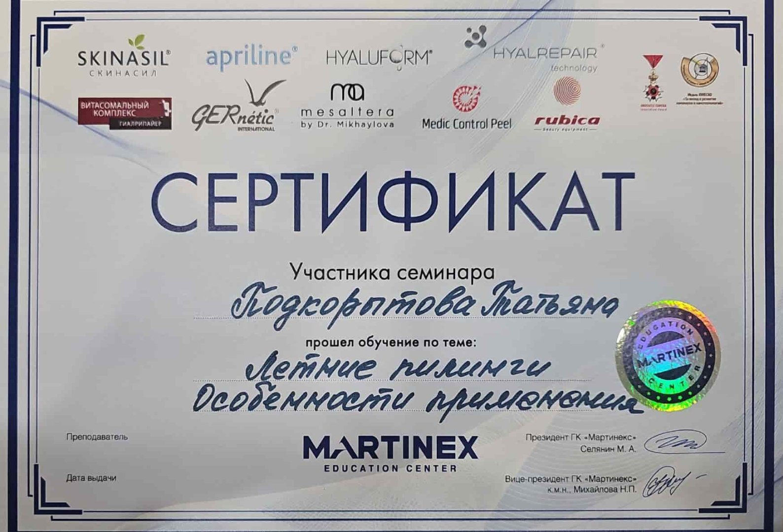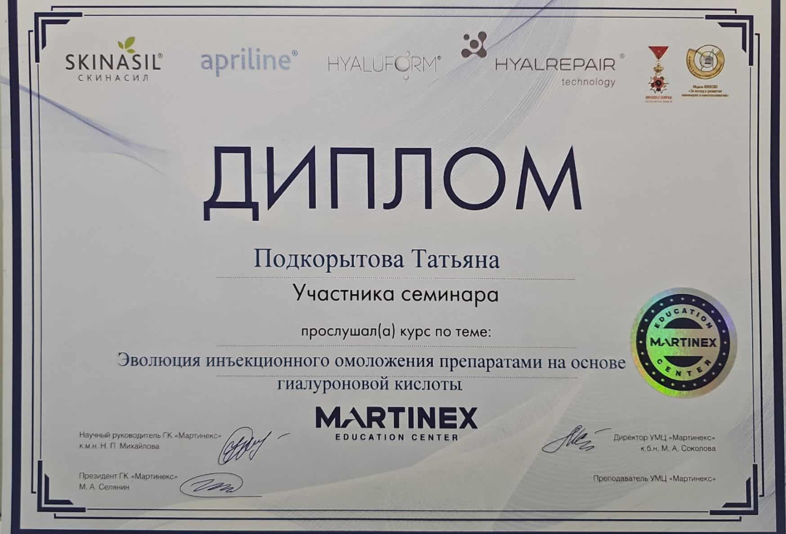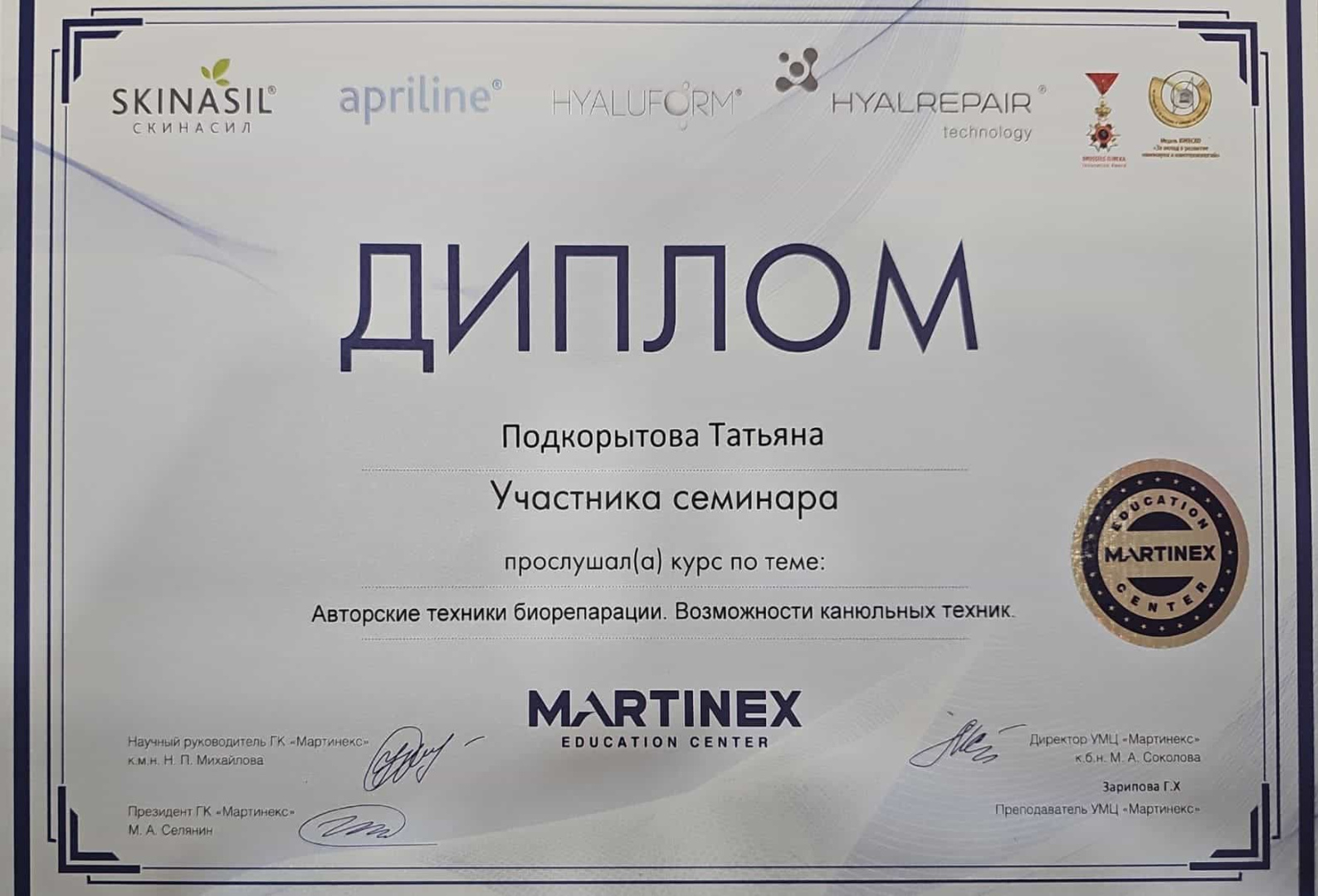 2021 - Кадавер-курс "Анатомия в деталях, безопасная косметология для эстетической медицины".