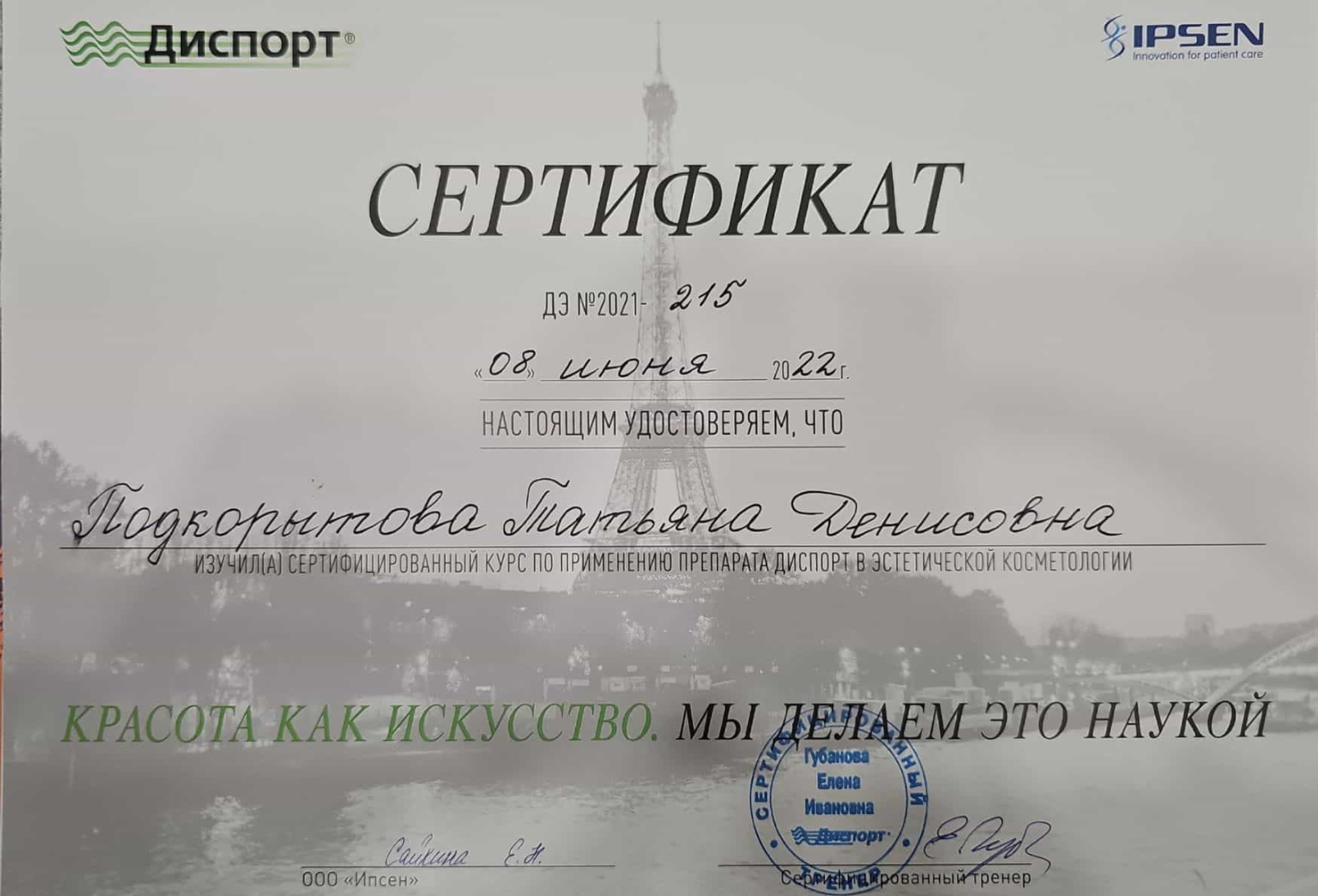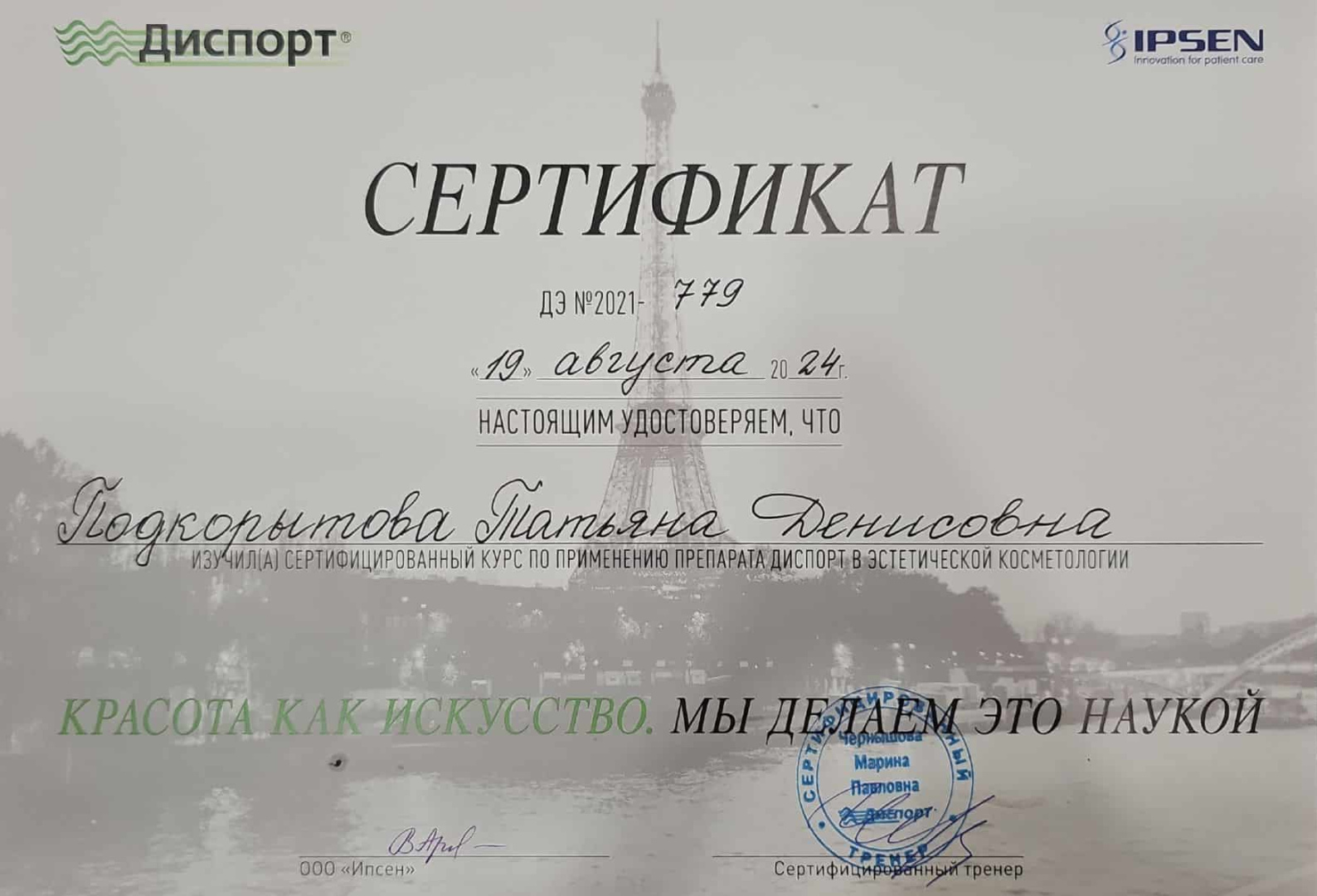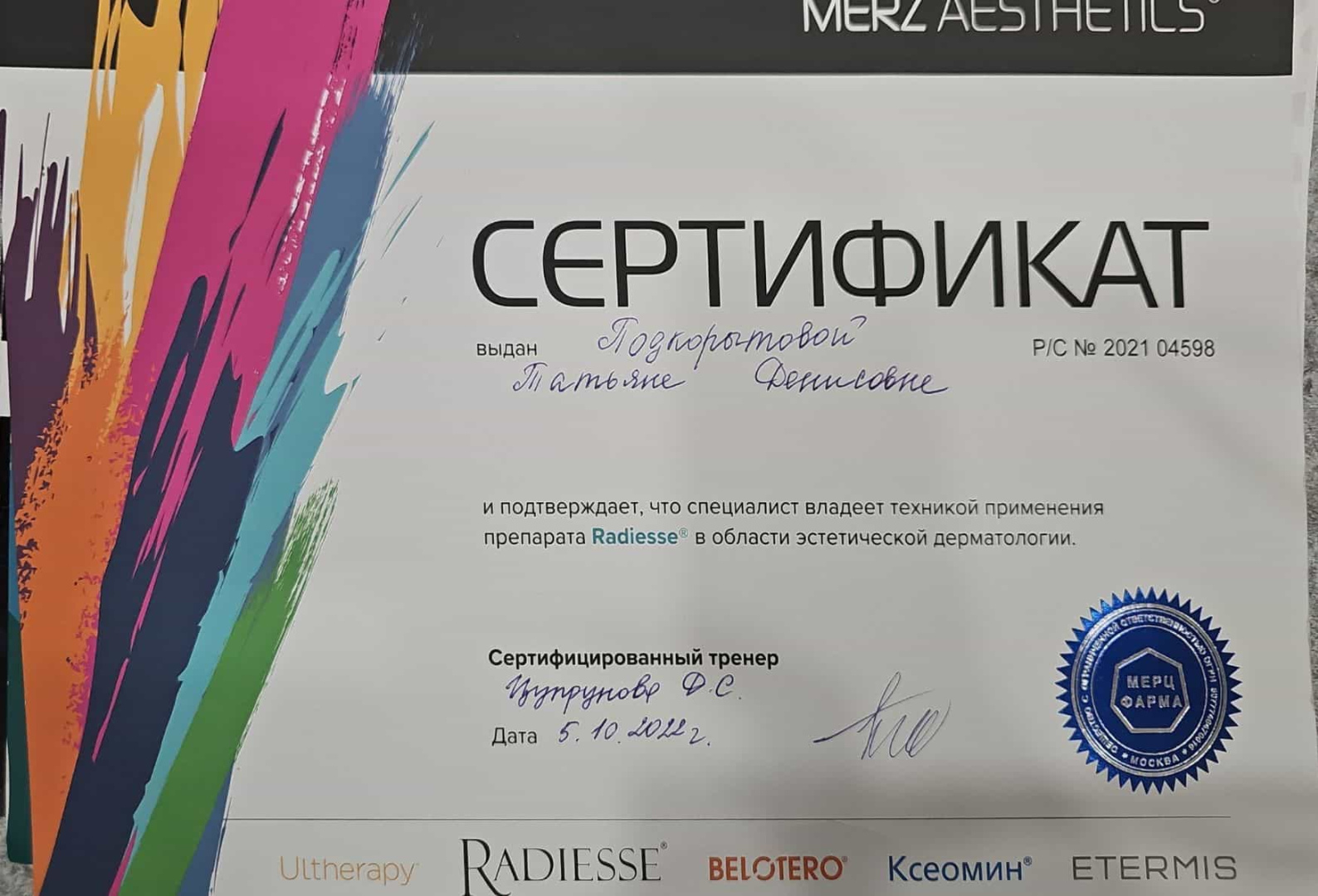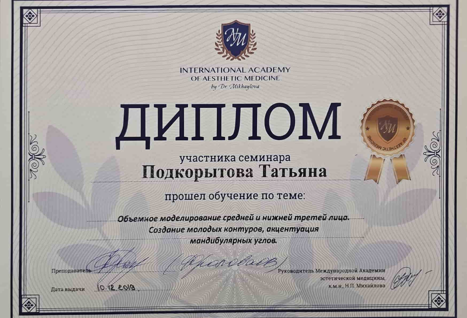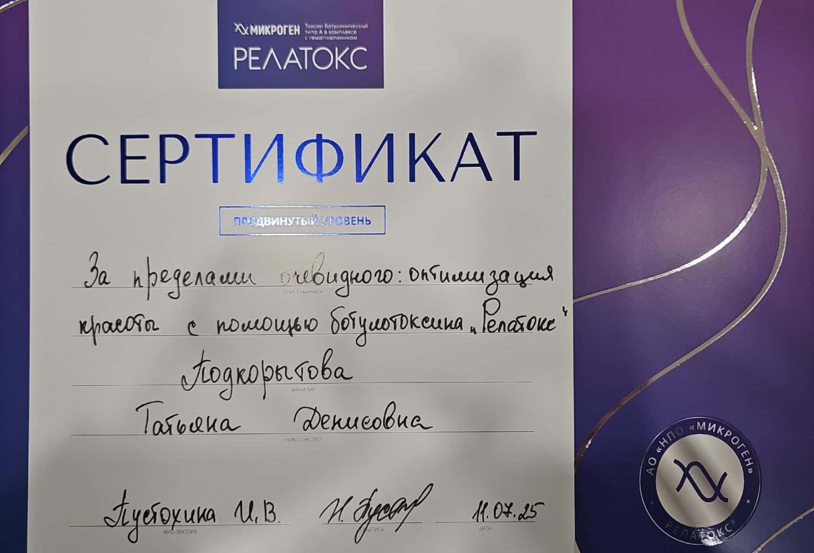 2021 - Кадавер-курс "Анатомия в деталях, безопасная косметология для эстетической медицины".