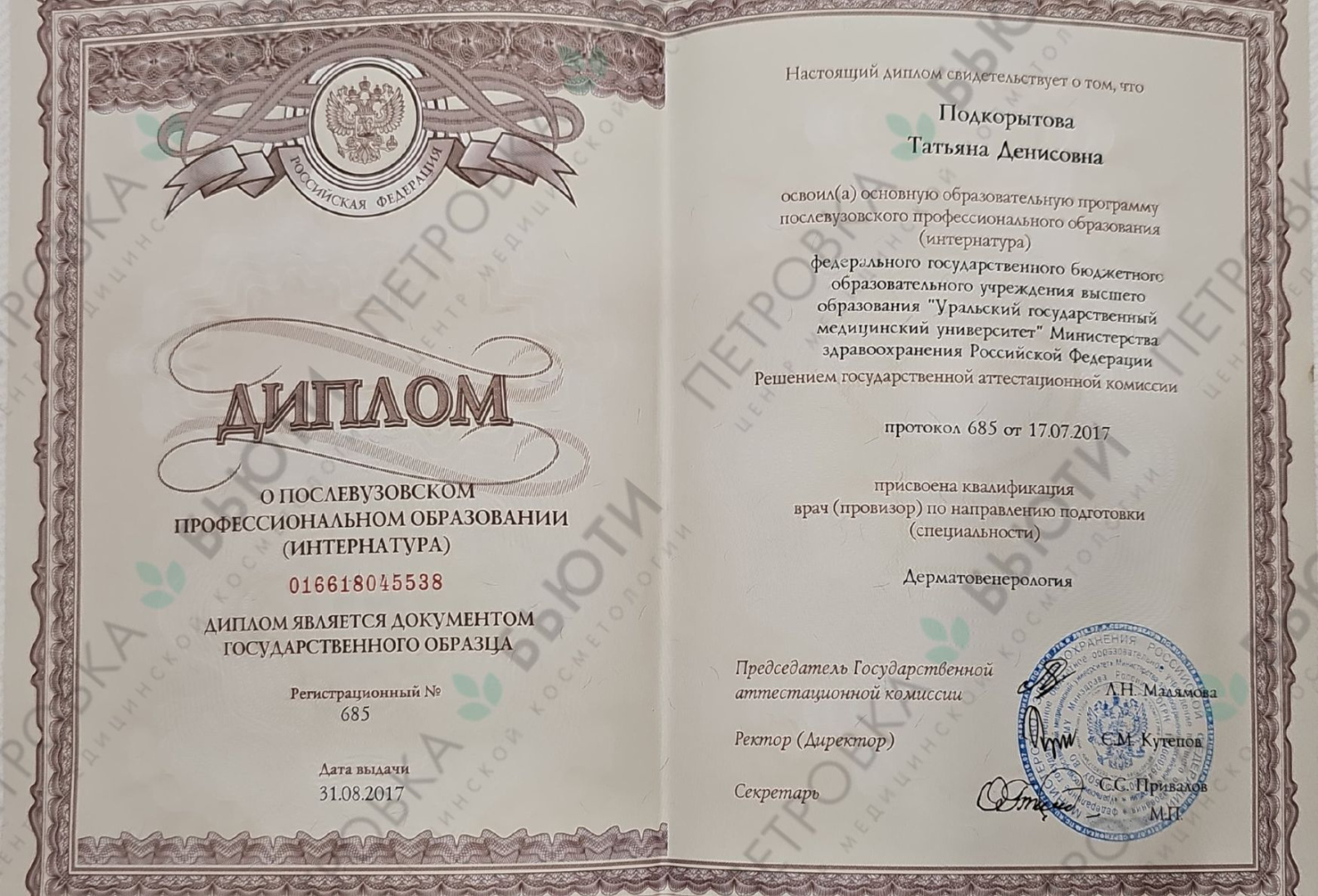 Меня зовут Татьяна Денисовна, и я являюсь квалифицированным врачом-дерматовенерологом и косметологом. Мой путь в медицине начался на 6 курсе медицинского университета, когда я осознала свое призвание помогать людям сохранять молодость и красоту. Именно тогда зародилась любовь к профилактике старения и созданию гармонии внешности.