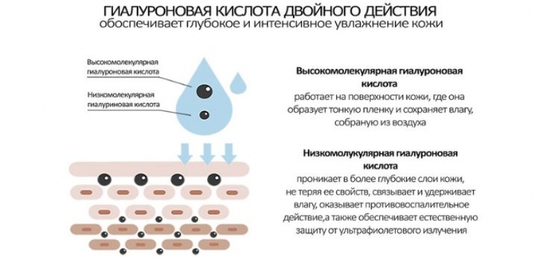 Современные биоревитализанты в базу чаще всего включают высокомолекулярную гиалуроновую кислоту, которая легко удерживает молекулы воды.