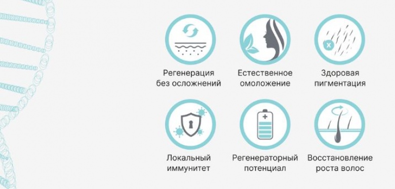 Стимуляция фибробластов, эндотелия. Можно добиться качественного улучшения здоровья кожи в целом, усиление синтеза коллагена и эластина и фактического омоложения.