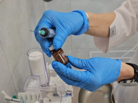 Перед сеансом врач оценивает состояние кожи, подбирает зоны коррекции и готовит препарат. Лиофилизированный порошок Repart PLA восстанавливается стерильной водой для инъекций с добавлением лидокаина - это делает процедуру максимально комфортной.