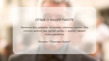 28 лет эффективной работы в историческом центре Москвы. Ул. Петровка, близко от метро. Оплата картой, wi-fi, подарочные сертификаты, анонимный прием, работа в выходные.