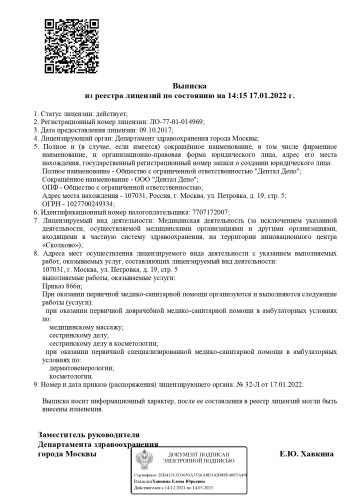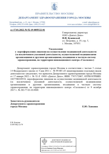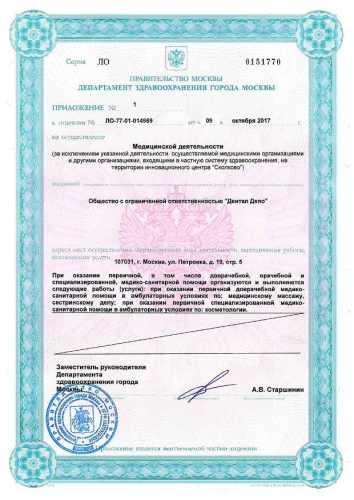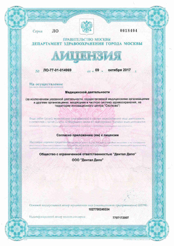 Медицинская лицензия № ЛО-77-01-014969 от 09.10.2017