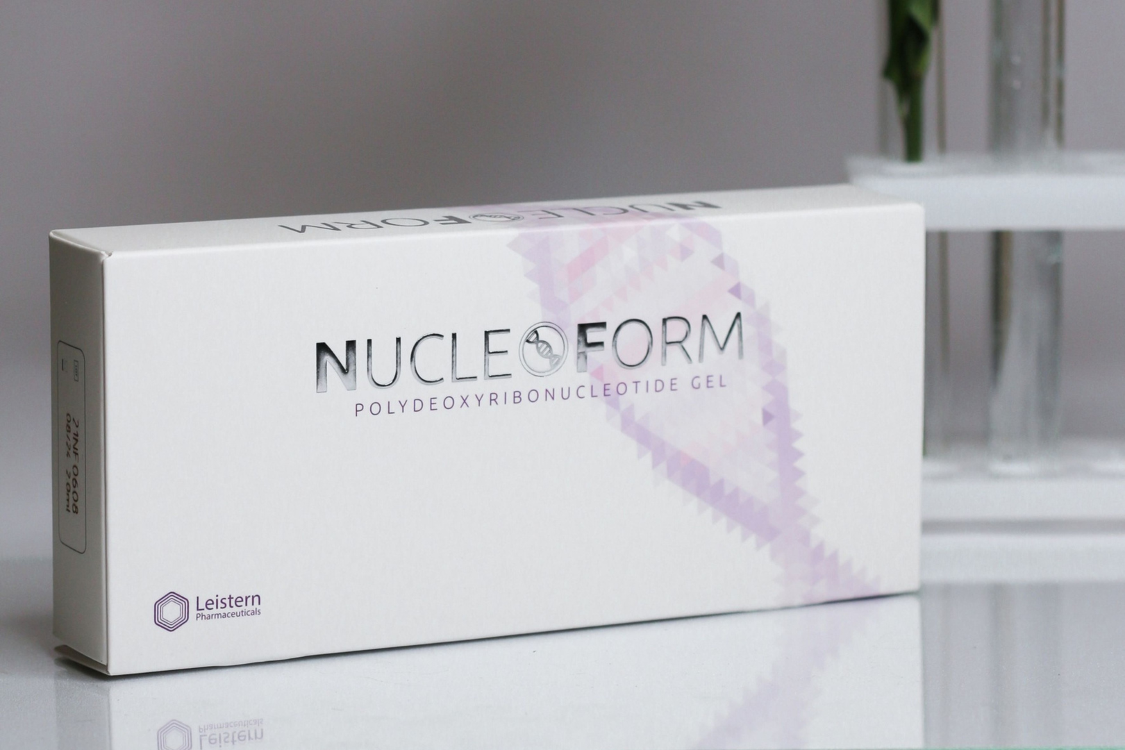 Одними из самых эффективных препаратов для восстановления тонуса кожи и ее увлажнения являются препараты с полинуклеотидами. Препарат, который мы предлагаем в клинике, называется Нуклеоформ (NucleoForm) - производства немецкой компании Leistern.