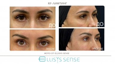 Отметим, что ELLISYS SENSE – единственный косметологический аппарат, позволяющий безопасно и результативно работать с подвижным веком вплоть до ресничного края. Удается улучшить качество кожи на верхнем и нижнем веке, подтянуть кожу и уменьшить грыжи.