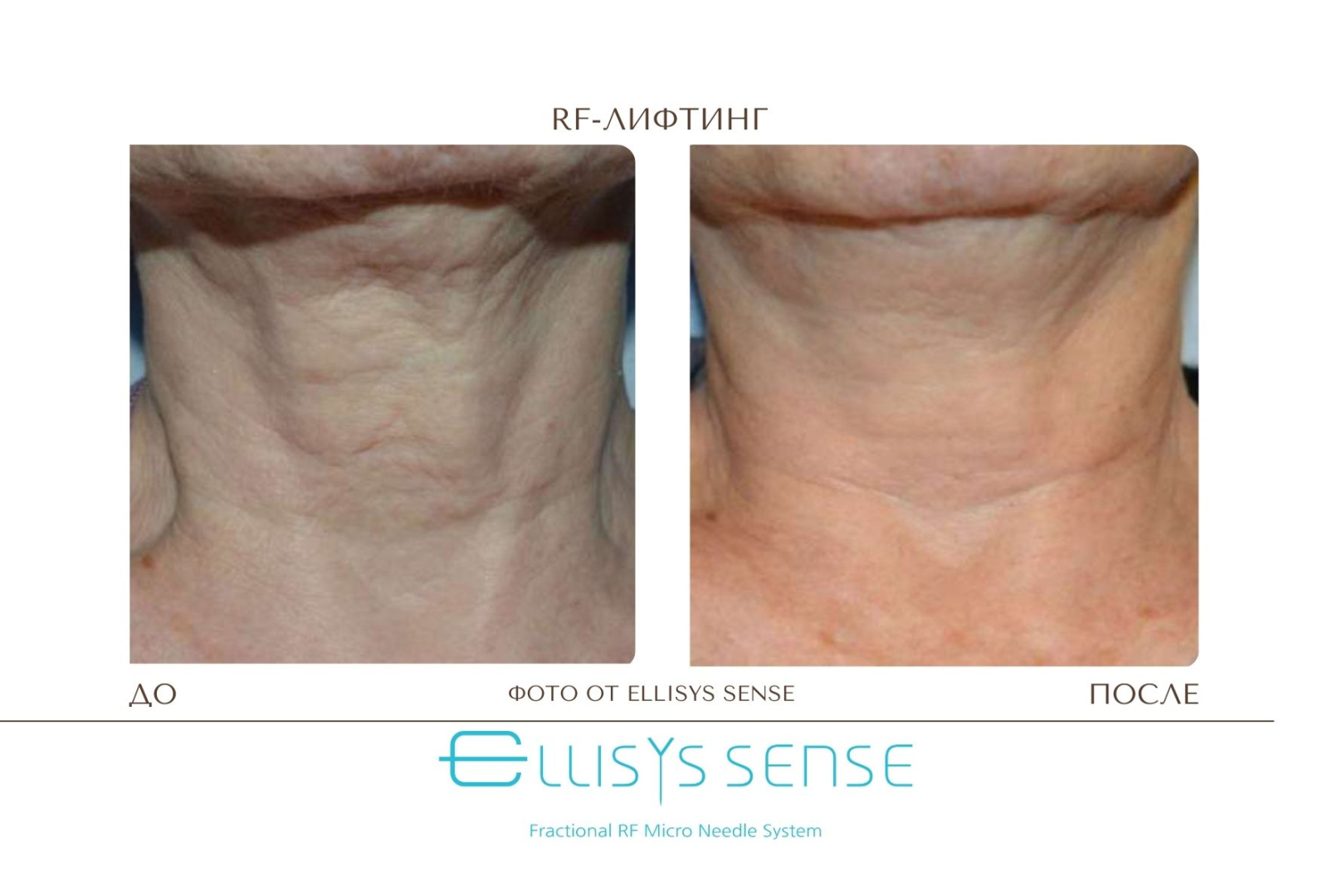 Для удаления дряблости кожи в области шеи RF-лифтинг сочетают с инъекциями гиалуроновой кислоты. Чередование инъекций с RF лифтингом с интервалом в 2-3 недели курсом из 3-4 процедур – это лучшее, что на сегодняшний день может предложить косметолог пациенту с запросом на омоложение шеи.