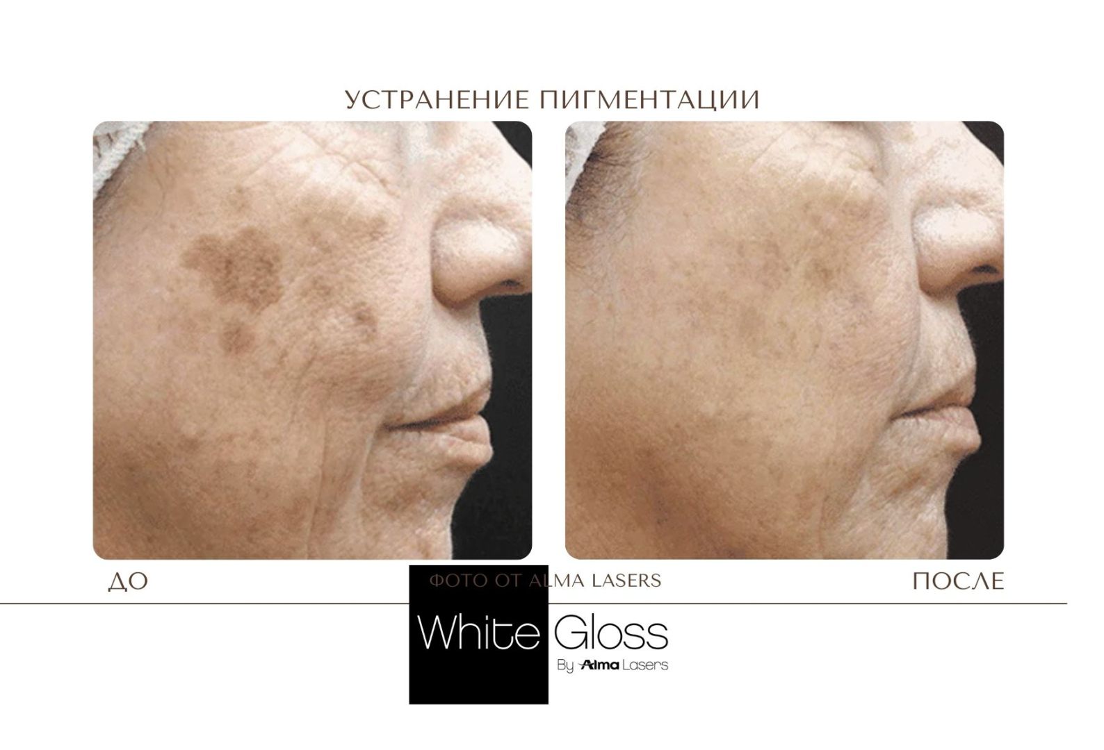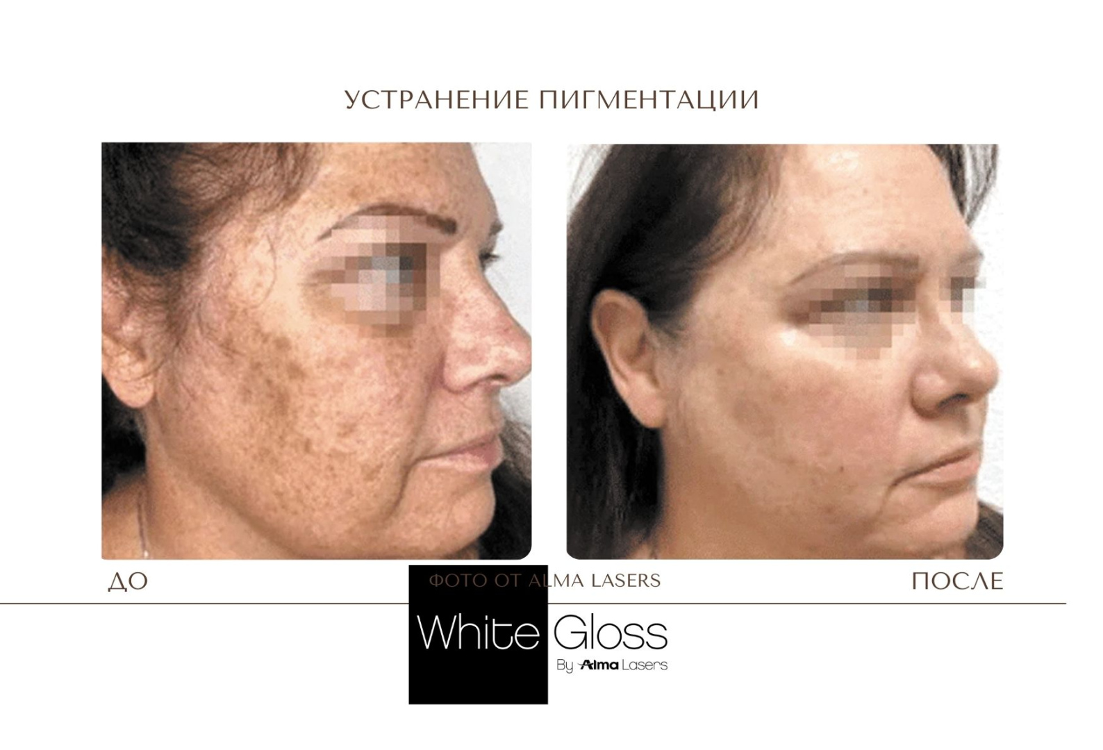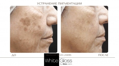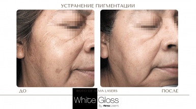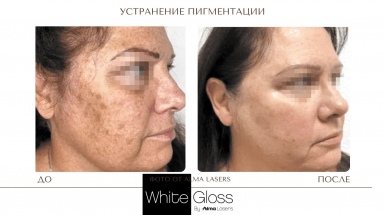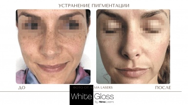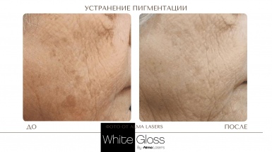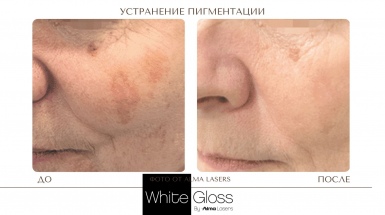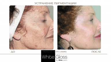 Протокол процедуры White Gloss относится к комбинированным методикам и включает лазерное и фото удаление пигмента: